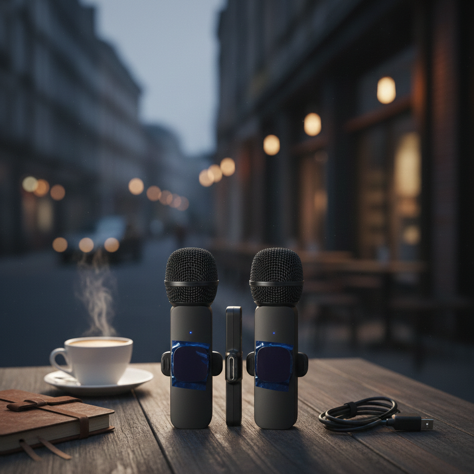 The K8 Dual Wireless Microphone is a professional-grade audio solution tailored for mobile content creators, journalists, and educators. Featuring a sleek, lightweight design, this system eliminates the clutter of cables, allowing you to record two subjects simultaneously with ease.Equipped with 360° omnidirectional pickup and a high-sensitivity condenser, the K8 ensures every nuance of the voice is captured. The built-in DSP (Digital Signal Processing) chip intelligently filters out background wind and ambient noise, delivering studio-like clarity even in outdoor environments. Its impressive battery life provides up to 6 hours of continuous use, ensuring you never miss a moment of the action.Key Features & Performance ResponsibilitiesDual-Channel Recording: Allows two people to record at once, making it ideal for interviews, podcasts, and collaborative videos.Automatic Pairing: No Bluetooth or apps required. Simply plug the receiver into your device and turn on the microphones to sync instantly.Intelligent Noise Cancellation: High-end acoustic technology effectively suppresses environmental noise for clear vocal reproduction.Long-Distance Transmission: Offers a stable, low-latency connection at a range of up to 20 meters (65 feet) in open areas.Universal Compatibility: Available in USB-C or Lightning configurations to support modern smartphones, tablets, and laptops.Real-Time Monitoring: Low-latency technology ensures your audio stays perfectly synced with your video during live broadcasts.